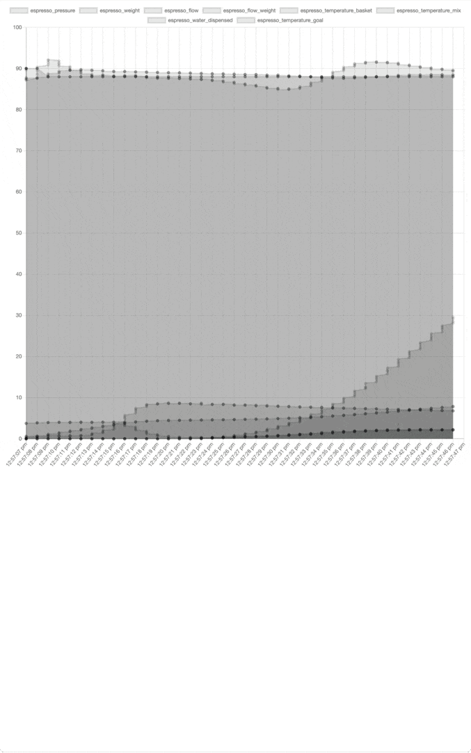 I received my Decent on Nov 4th, 2020, and almost immediately, I wanted to analyze my shots on a big screen instead of the wonky Android tablet. Looking at the timestamps of photos and git commits, I can see I unboxed the espresso machine at 1 PM, and the first commit was made just 3 hours later. 🙈